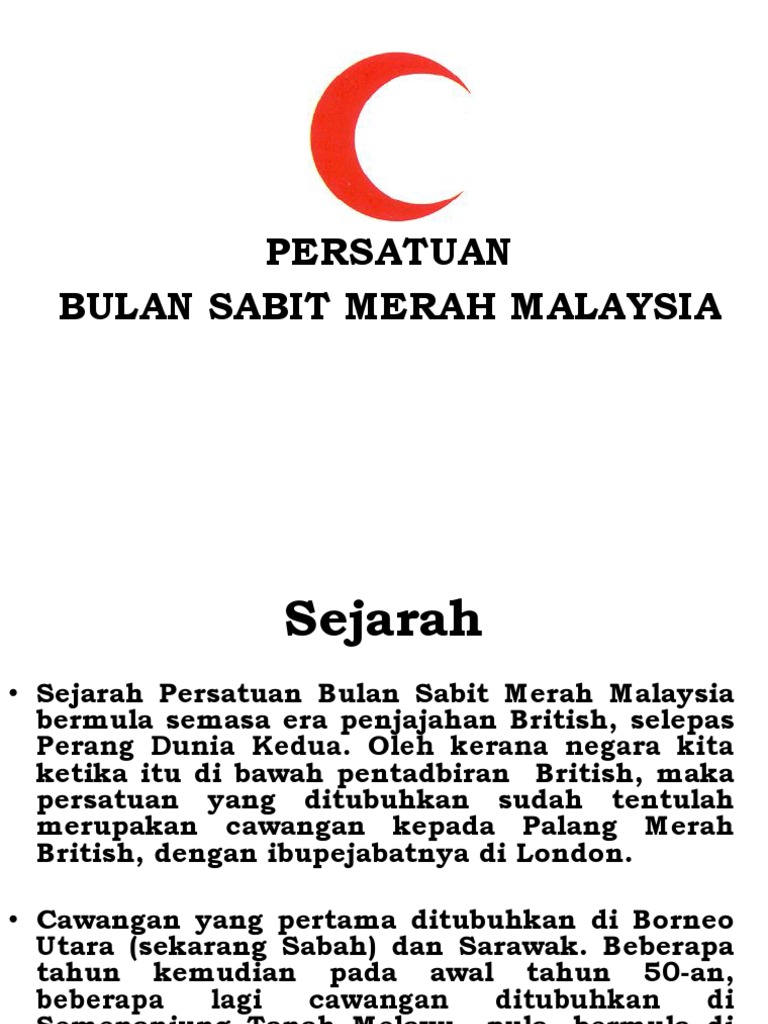 Mendapatkan maklumat lanjut tentang penganjuran kursus ini dengan bantuan ahli paramedik mereka. Sejarah Permulaan Bulan Sabit Merah Malaysia PBSM ditubuhkan pada tahun 1948 sebagai cawangan Persatuan Palang Merah Britain di Sabah dan Sarawak. Lima bilah keris Mewakili negeri Perlis Kedah Kelantan Terengganu dan Johor.